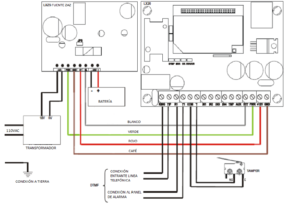 Conexión del Transmisor GPRS LX con la fuente de alimentación ZAS