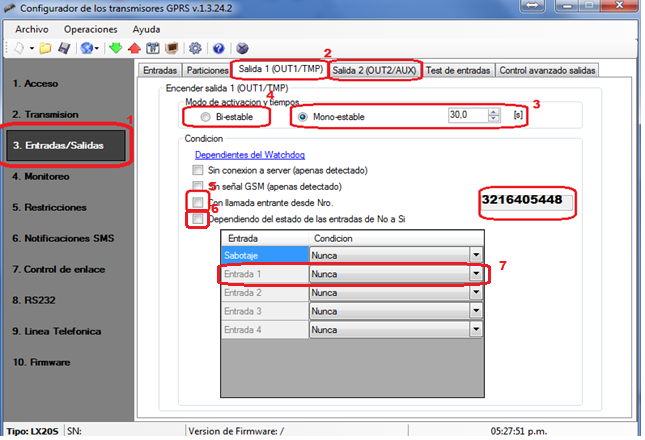 Realice el siguiente procedimiento para realizar la configuración del funcionamiento de las salidas haciendo uso del configurador de los transmisores GPRS: